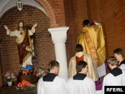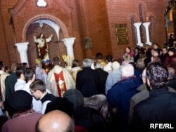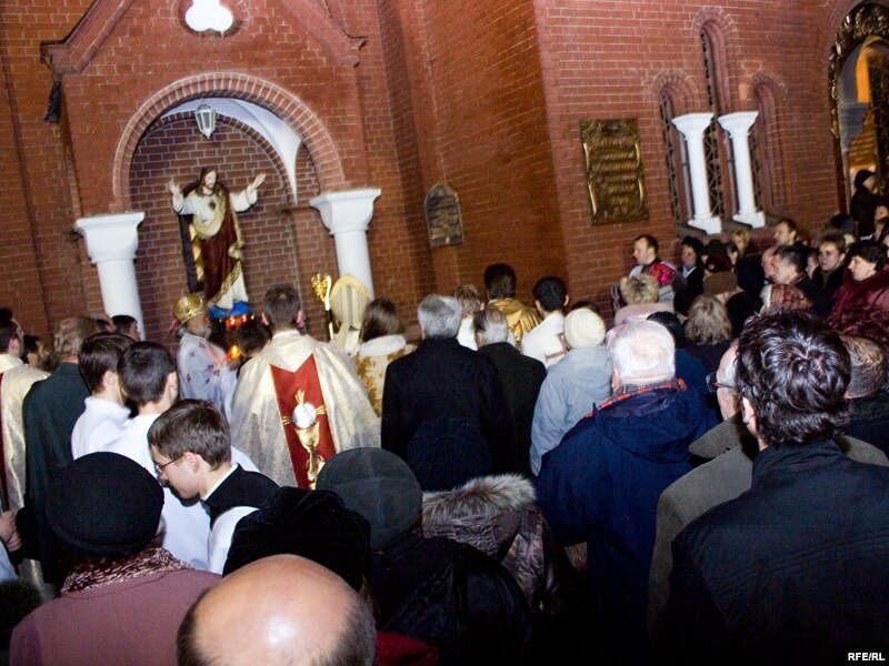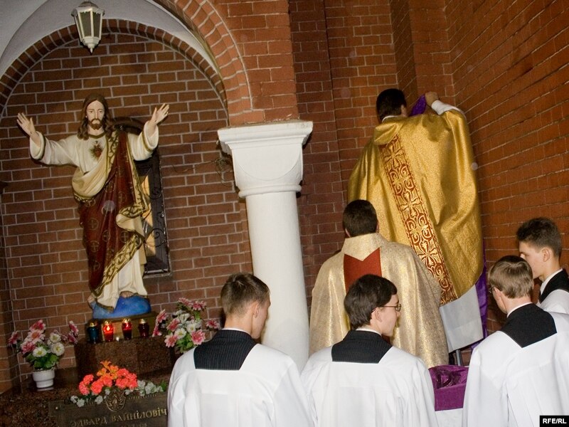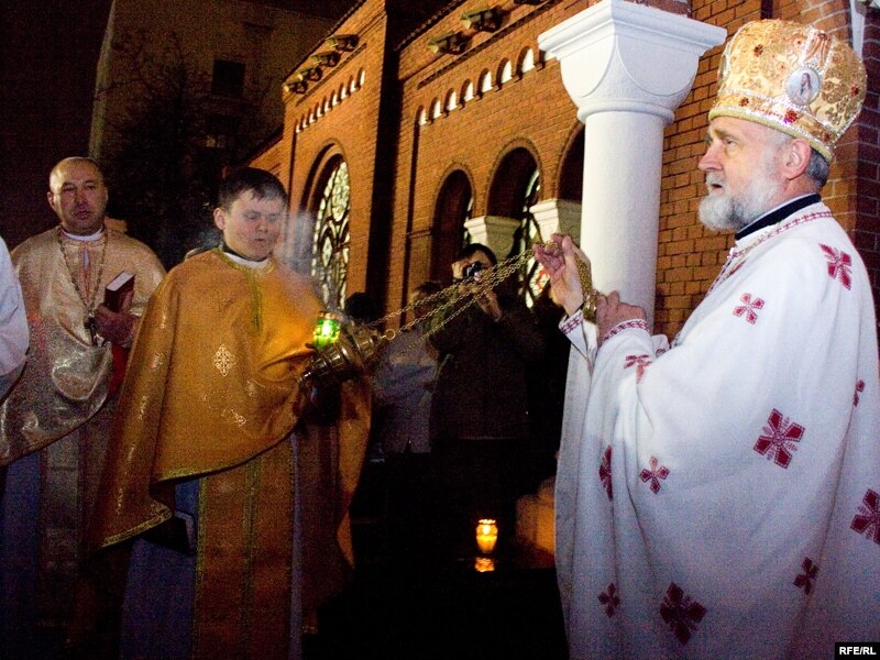 Службу ў Чырвоным касьцёле вялі мітрапаліт Тадэвуш Кандрусевіч разам з апостальскім візытатарам для грэка-каталікоў Беларусі архімандрытам Сяргеем Гаекам.