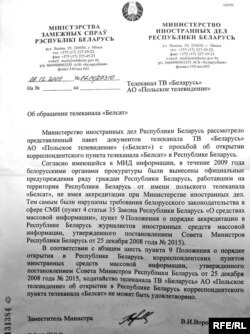 Паводле спадара Янчука, ліст з адмова падпісаны намесьнікам міністра замежных спраў Беларусі Валерам Варанецкім. Падстава для адмовы тая, што паводле пракуратуры цягам году журналісты Белсату працавалі на тэрыторыі краіны без акрэдытацыі, чым парушылі закон.