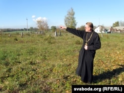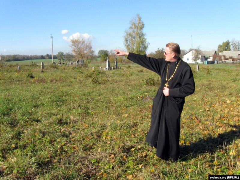 Настаяцель царквы, айцец Аляксандар, паказвае, як зруйнавалі старыя могілкі, калі наводзілі там парадак