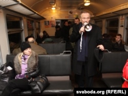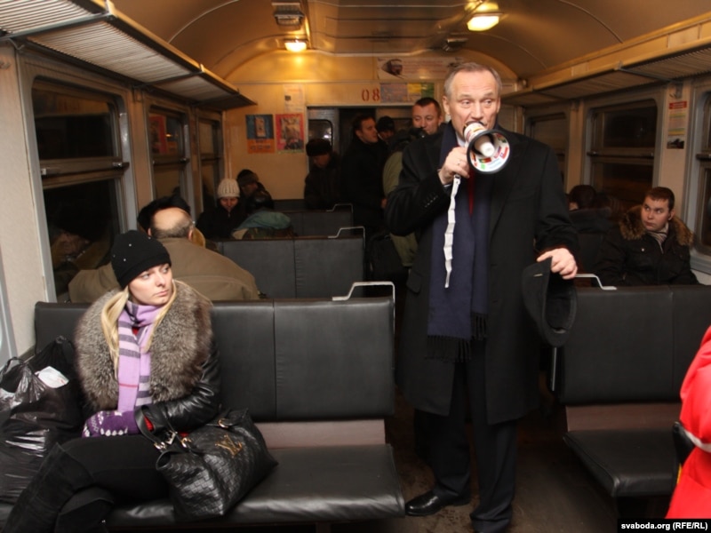 На Прывакзальную плошчу Ўладзімер Някляеў прыехаў электрычкай Менск- Маладэчна з Заслаўя, дзе наведаў выбарчыя ўчасткі, а на зваротным шляху прайшоў па вагонах, заклікаючы людзей прыйсьці на Прывакзальную плошчу.