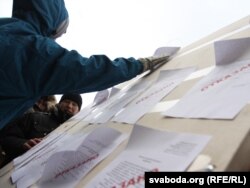 Прадстаўнікі ініцыятывы "Грамадзянін" усталявалі насупраць будынку Менгарвыканкаму «Сьцяну ганьбы» — шчыт з прымацаванымі да яго дзясяткамі копіяў заяў на правядзеньне акцыяў, у якіх было адмоўлена.