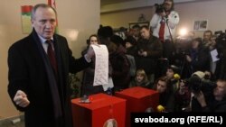 Кандыдат на прэзыдэнта Ўладзімер Някляеў падчас галасаваньня выкрасьліў у бюлетэні прозьвішча Аляксандра Лукашэнкі і напісаў лёзунг "Новыя выбары без Лукашэнкі". Паводле спадара Някляева, гэта новая плятформа для аб'яднаньня дэмакратычных сіл: