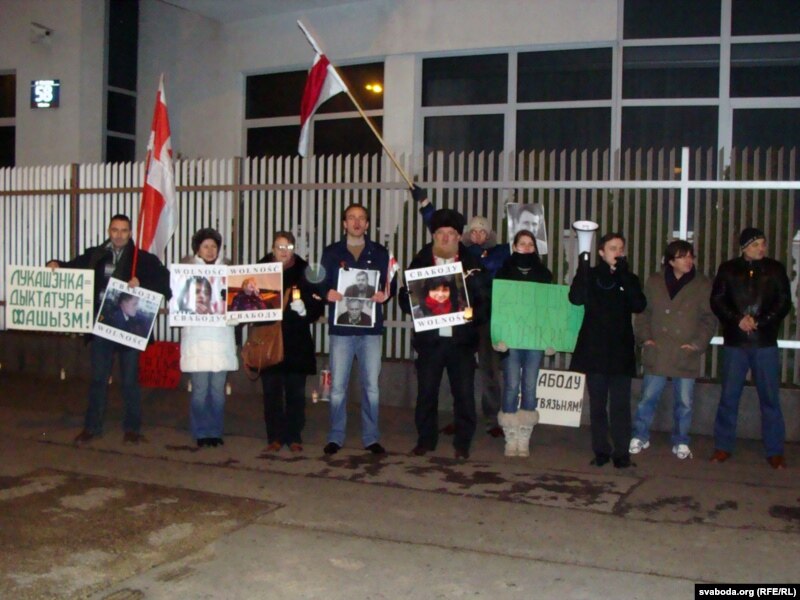 "У адказ на зварот удзельнікаў акцыі да беларускіх дыпляматаў з заклікам неадкладна вызваліць палітвязьняў тыя не прыдумалі нічога лепшага, як зачыніць консульства, заявіўшы прыкладна 20 палякам, якія прыйшлі па беларускія візы, што пікетоўцы блякуюць іхную працу і пакуль пікет ня скончыцца, консульства працаваць ня будзе", — кажа адзін з удзельнікаў акцыі Сяргей Касьцюковіч.