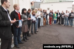 Павал Севярынец і Віталь Рымашэўскі (зьлева) на адной з малітоўных акцый ля касьцёла сьвятога Язэпа.