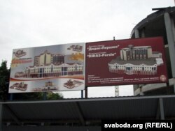 Рынкі — найбольш людныя месцы і найбольш выгадныя для рэклямы. Сацыяльна-палітычная рэкляма з цытатай Лукашэнкі ля цэнтральнага рынку Берасьця.