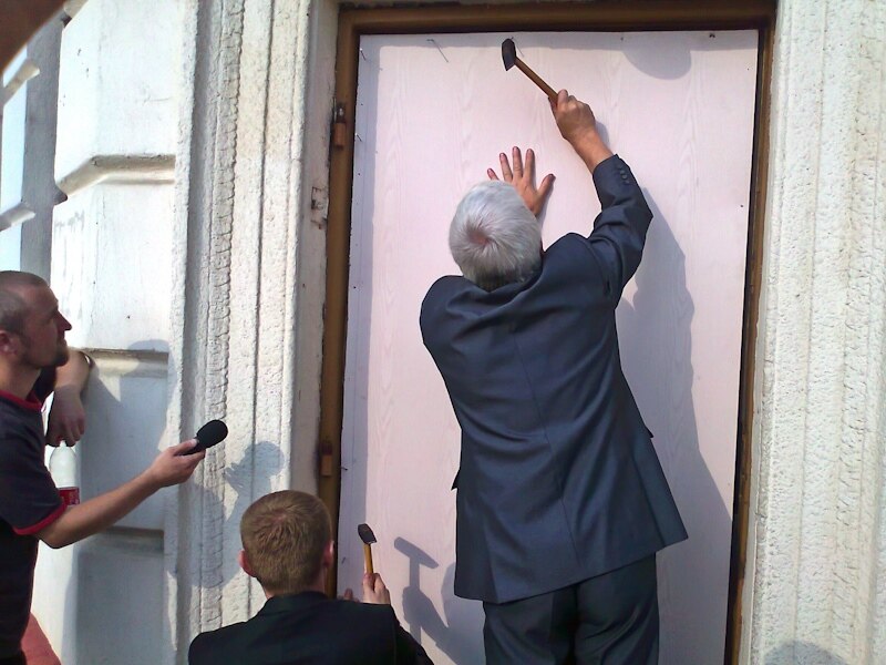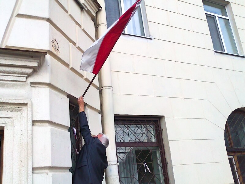 Партыя БНФ у апошні дзень валоданьня цэнтральным офісам на праспэкце Машэрава, 8 у Менску правяла акцыю "Разьвітаньне зь сядзібай".
