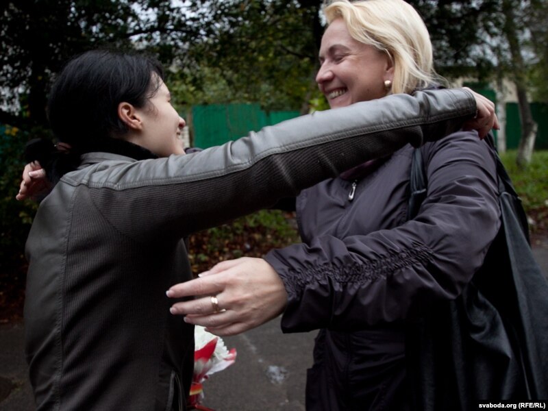 Мікіта Ліхавід сустракае Насту Палажанку пасьля 11-суткавага арышту