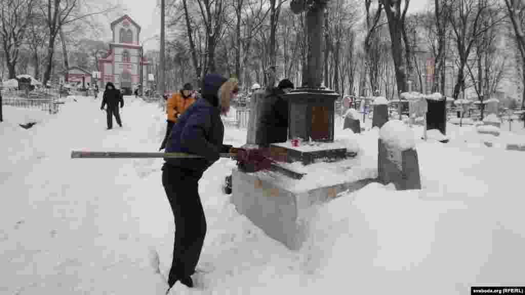 Прадстаўнік гарадзкіх уладаў прадэманстраваў, што таксама прыбірае могілкі, але толькі вайсковыя