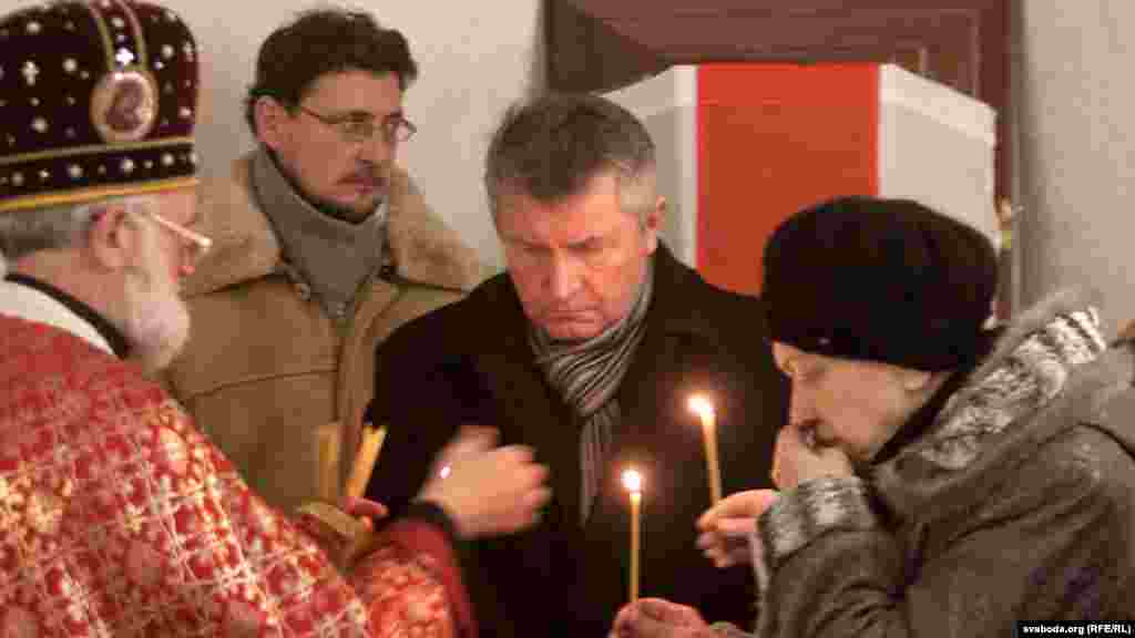 Труна Міхася Чарняўскага патанала ў жывых кветках, жалобная заля была перапоўненая людзьмі: разьвітацца з настаўнікам, паплечнікам і сябрам прыйшлі дзясяткі людзей, хто падзяляў ягоныя ідэі і жыцьцёвую пазыцыю — змаганьне за нацыянальныя каштоўнасьці, вольную і незалежную Беларусь.