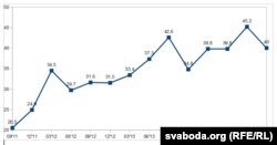Графік 1. Дынаміка электаральнага рэйтынгу прэзыдэнта А. Лукашэнкі,%