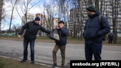 Адзін зь мінакоў паспрабаваў пачаць размову зь пікетоўцамі і сказаў, што яны абараняюць «украінскіх фашыстаў», але ў адказ пачуў «Чамадан, вакзал, Расея».