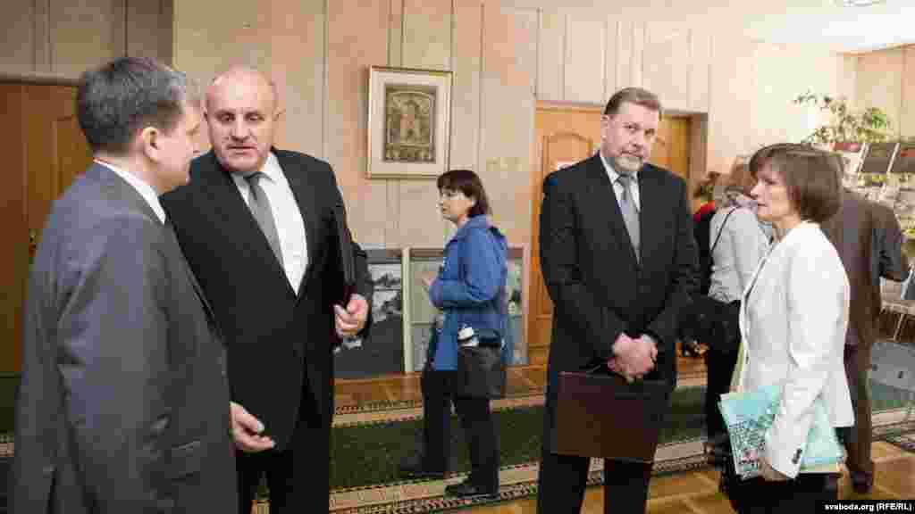Аляксандр Каваленя, акадэмік-сакратар аддзяленьня гуманітарных навук і мастацтваў НАНБ. Аляксандар Лакотка, дырэктар Інстытуту мастацтвазнаўства, этнаграфіі і фальклору імя Кандрата Крапівы НАНБ, першы намесьнік міністра адукацыі Вадзім Богуш