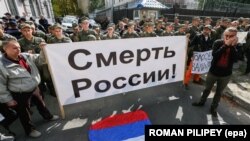 У суботу пад амбасадай Расеі ў Кіеве актывісты ў знак пратэсту супраць выбараў у Дзярждуму спалілі расейскі сьцяг. Пазьней большасьць актывістаў згарнулі свае плякаты і пачалі разыходзіцца.