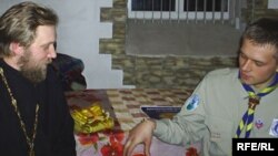 "Гэтая акцыя ўпершыню прайшла 10 год таму. Яе заснавалі аўстрыйскія скаўты пры падтрымцы аўстрыйскага тэлебачаньня. Аўстрыйскія скаўты й цяпер штогод едуць у Бэтлеем, бяруць часьцінку агню і ўжо далей распаўсюджваюць яго з краіны ў краіну, з арганізацыі ў арганізацыю. Агонь захоўваецца ў цэрквах і касьцёлах да Нараджэньня Хрыстова. З гэтага храму ён будзе перададзены па эстафэце ў касьцёл Сьвятой Варвары. А 22 сьнежня часьцінка Бэтлеемскага агню будзе перададзена расейскім скаўтам, якія павязуць яго ў Маскву, а потым далей і далей".