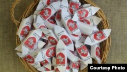 Як і ў мінулы раз, пад абгорткай — звычайныя «сэрыйныя» цукеркі, «Алёнка» фабрыкі «Камунарка», апавядае Свабодзе кіраўнік крамы Павал Белавус:
