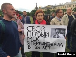 На Марсавым полі ў расейскім Санкт-Пецярбурзе ўвечары 6 чэрвеня адбыўся мітынг супраць наданьня масту праз раку Дудзяргофку на паўднёвым захадзе горада імя першага прэзыдэнта Чачэнскай рэспублікі Ахмата Кадырава.